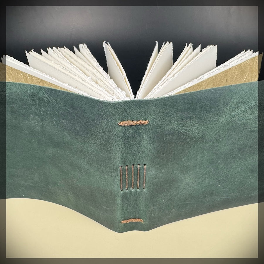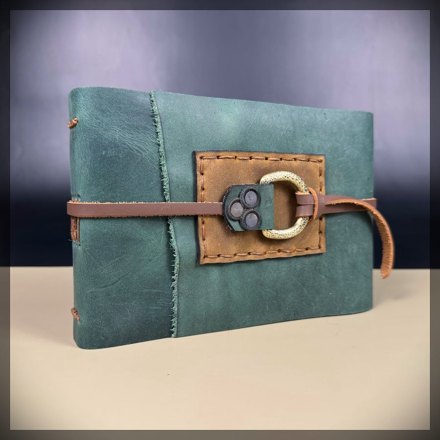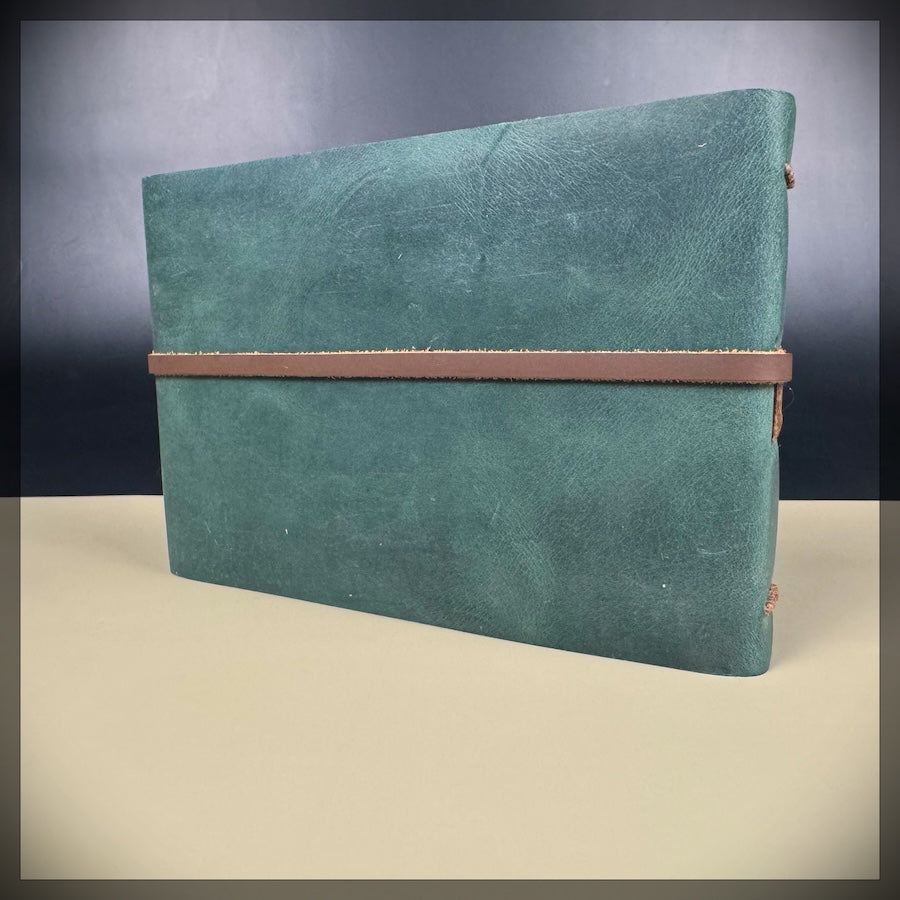 With its rich emerald-green leather and landscape format, this journal immediately feels open and accommodating—like it’s making room for whatever you want to explore next. The supple leather is paired with a simple wrap closure that keeps your pages secure while still allowing the journal to open comfortably and lie beautifully as you work.